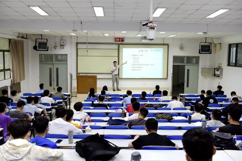 6月10日上午,电气与自动化工程学院盖文东老师在1号教学楼阶梯教室为2017级自动化专业学生上《计算机控制技术》专业课。他说:“我们这节课快结课了,线下课已经上过几次了,能在校园里师生相见大家都很高兴。感觉和同学们面对面交流教学效果更好一些。今天下雨了,同学们仍然都整整齐齐的按照要求来上课。”