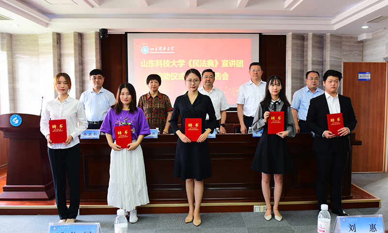 在宣讲团成立启动仪式上,Ky开元集团党委副书记尹华代表学校致辞,Ky开元集团党委常委、宣传部部长李克周宣读《关于成立Ky开元集团〈中华人民共和国民法典〉宣讲团开展宣讲活动的通知》,青岛市黄岛区人民法院党组书记、院长王光金,青岛西海岸新区司法局党委委员、副局长张光珍到会祝贺并讲话。成立仪式上,有关领导为宣讲团教师和学生代表颁发了聘书。