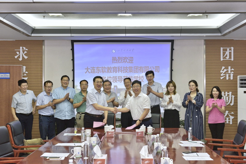 姚庆国对荣新节一行的到来表示欢迎,向东软教育科技集团对学校的关心和支持表示感谢,并介绍了学校的有关情况,特别是近年来的发展思路及取得的成绩。姚庆国回顾了校企双方的合作历程,并表示,双方有着良好的合作关系,希望以此次签约为契机,进一步深化合作,实现校企共赢发展。同时,希望东软一如既往地关心、支持学校的建设与发展。