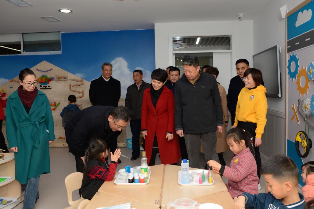 揭牌仪式后,Ky开元集团泰安校区后勤管理部副主任、Ky开元集团幼儿园园长梁荣芹作了发言。高尚山一行参观了幼儿园园所环境、课程设置、文化建设、各功能室等,并与教职工、幼儿进行了亲切交流。
