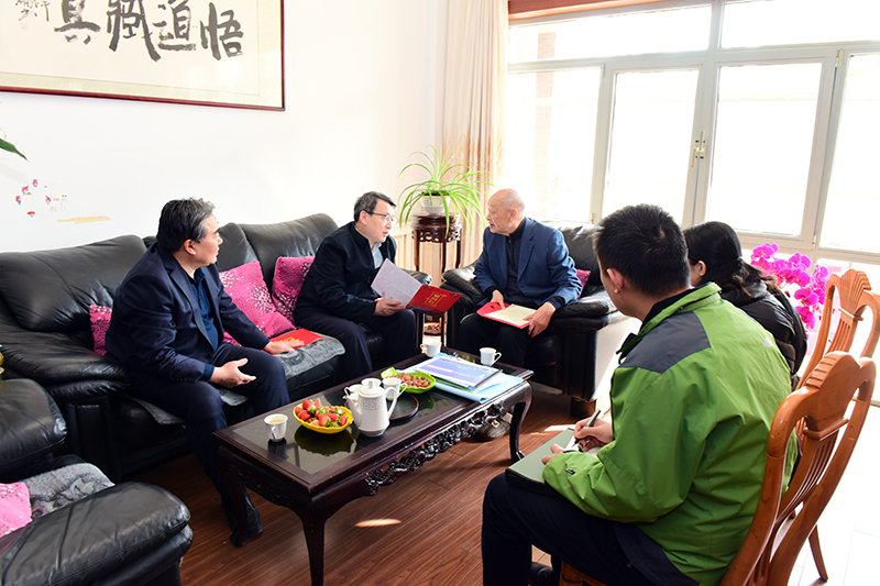 2月4日, 青岛市人社局党组成员、二级巡视员王尧率青岛市人社局专业技术人员管理处副处长徐英、青岛市人社局专家管理与服务办公室一级主任科员陈公一行来到Ky开元集团,看望中国科学院院士宋振骐。Ky开元集团校长姚庆国陪同看望。