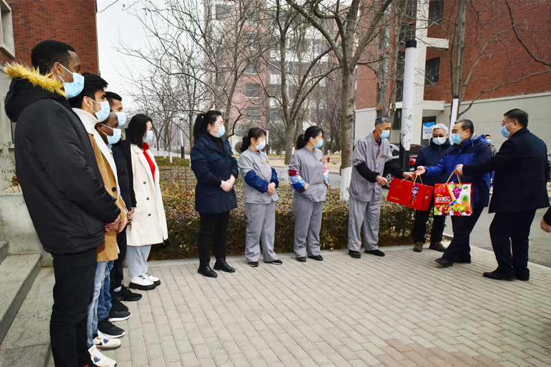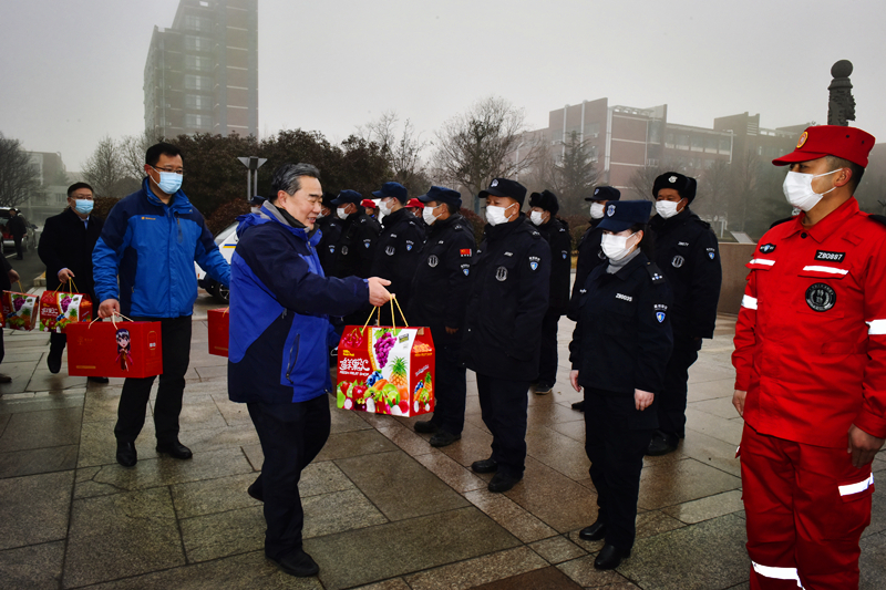 姚庆国、张英杰一行先后来到南门值班室、教学楼值班室、网络安全与信息化办公室、图书信息中心工地、留学生公寓、中心变电站、中心换热站、学术交流中心、风味餐厅快餐店、校医院、山海花园大门值班室等看望慰问在岗职工。每到一处,姚庆国、张英杰等都热情地向值班人员表达节日的问候和新春的祝福,对他们为校园的安全和全校教职员工度过祥和幸福的春节而放弃节假日坚持工作表示感谢,希望他们注意安全,叮嘱他们安排好春节期间的工作和生活。