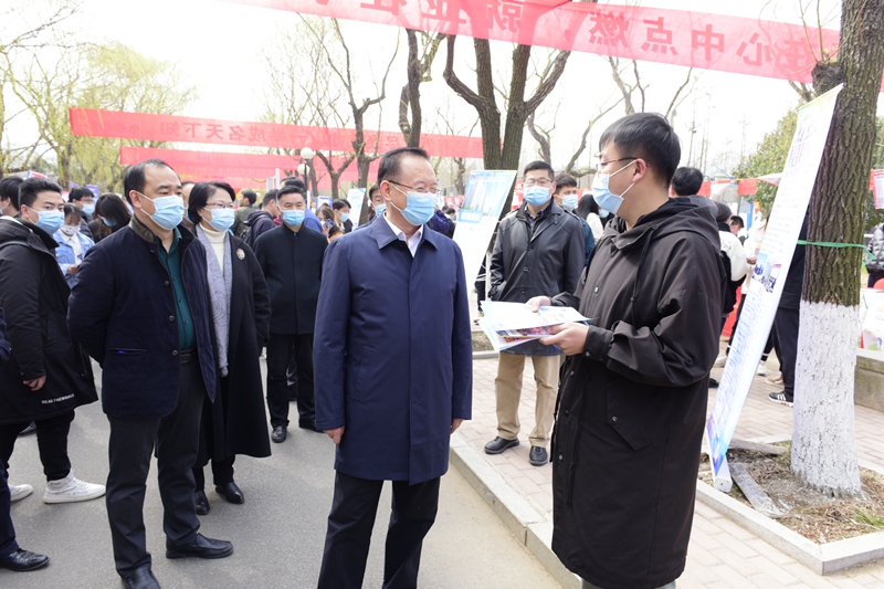 校领导、校党委领导班子成员罗公利、李玉霞、曾庆田、李克周到招聘会现场调研就业情况,指导就业工作。罗公利不时和企业代表交流“这次要招聘多少人?招的怎么样?”他感谢用人单位对学校人才培养质量的信任,认真听取了用人单位对我校人才培养、就业指导等方面的建议。校领导在现场亲切询问毕业生签约情况,鼓励大家在广阔的市场环境中实现自己的人生价值,同时要求学校相关部门不断创新工作方法,更好的促进学校毕业生就业。