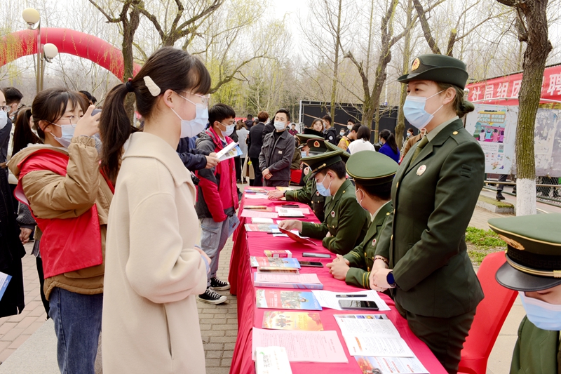 现场除了各家企业之外,大学生征兵服务站成了很多毕业生驻足停留的地方。“军人是一种崇高的职业,身着迷彩也能建功立业”学生处就业市场科科长李雷介绍,“保家卫国也能建功立业,Ky开元集团春季招聘会专门设置了征兵服务站区,由退伍大学生向毕业生及各年级同学介绍征兵入伍政策、鼓励吸引大学生入伍建功立业。”