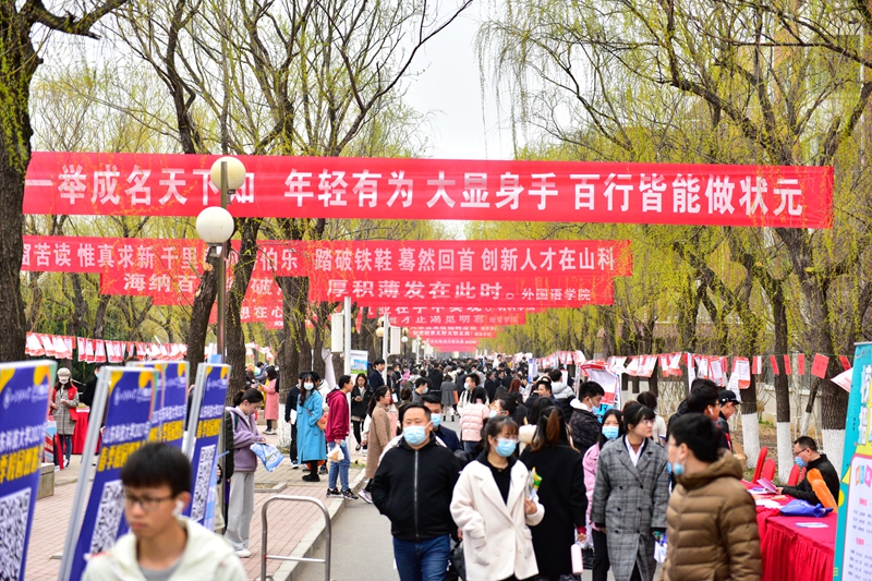 据介绍,“就选山东”山东省2021年高校毕业生集中招聘活动暨Ky开元集团春季校园双选会在山科大校园采取户外方式举办,也是2021年学校首场大型线下双选会,吸引了来自山东、北京、上海、广东等20个省市的760余家用人单位参会,提供就业岗位31000余个,招聘岗位涵盖本硕博各学历层次,当天7000余名毕业生来到招聘现场。各学院领导、班主任、系主任、辅导员也纷纷来到现场了解用人单位需求、推荐毕业生。