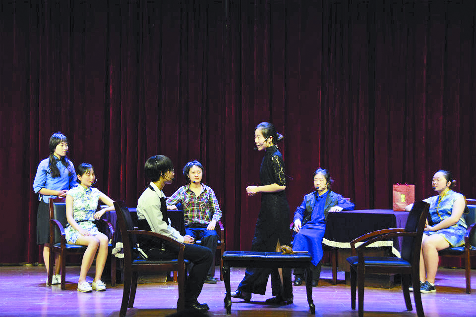 图为中文系学生表演话剧现场