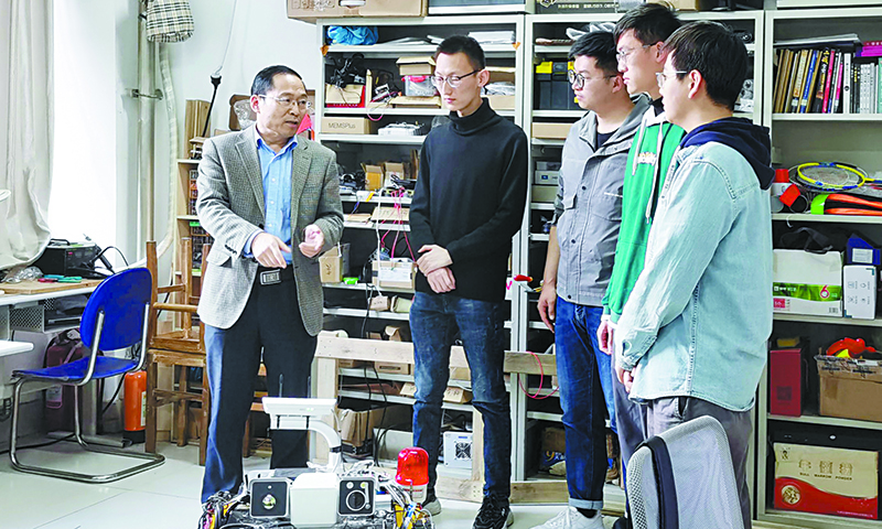 辛嵩教授(左一)指导学生