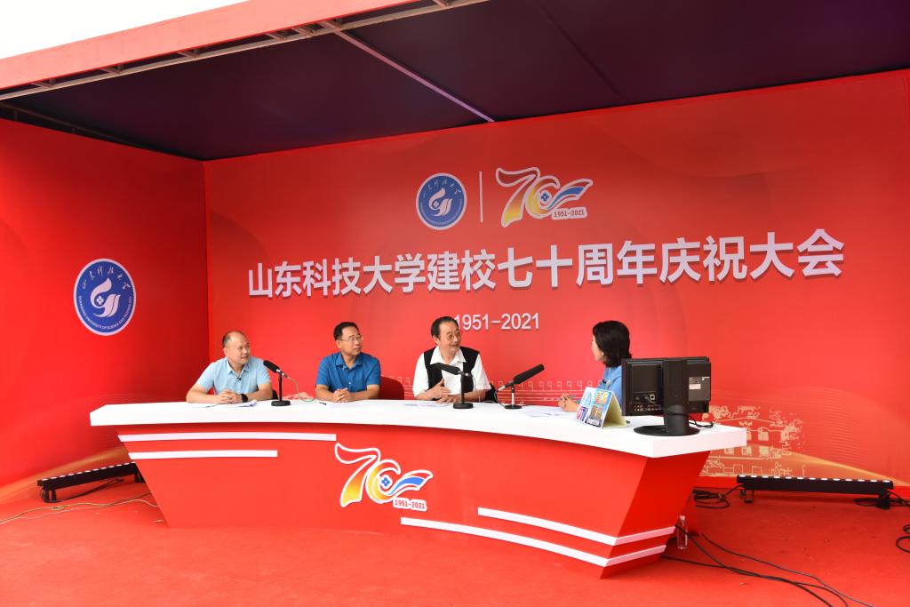 据宣传工作组成员王鑫介绍,在学校修改庆祝方案、提出70周年7小时直播的计划后,接到工作任务的宣传工作组不等不靠,与富有直播经验的社会媒体联合攻关,保证直播活动顺利进行。直播活动从理念的提出,到最终直播落实,留给直播团队的仅仅只有25天,其中还有三天的中秋假期。本次直播活动,涉及宣传部、组织部、合作发展处、泰安校区、济南校区等校内单位,涉及诸多直播平台等外部单位,涉及单位多、牵扯面广、综合协调难度大。团队需要在20多天的时间内,完成方案制定、脚本设计、演播室拍摄、三地拍摄、剪辑配音、成片送审等多项任务。校企双方一起挂图作战、一起倒排工期、一起攻坚克难、一起昼夜辛苦,各种不利因素一一消除,各种难题矛盾一一化解,校庆7小时直播按时播出,取得了圆满成功。