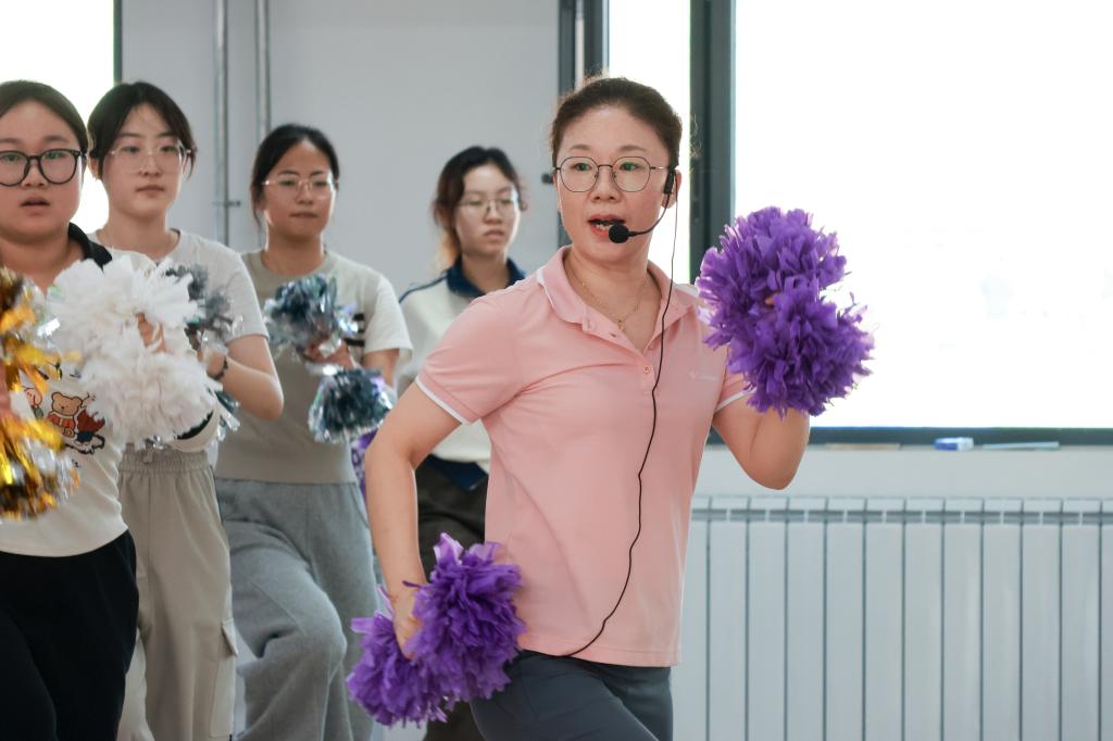 “很多学生最初以为健美操只是学动作、练协调,但丁老师的课远不止于此。”2023级产品设计专业的郑杰回忆,“她会在教‘开合跳’时讲解节奏与美学,在编排队形时强调每个人的价值。她常说:‘你们不是一个人在跳,而是一个团队在呈现一部优秀的作品。’”
