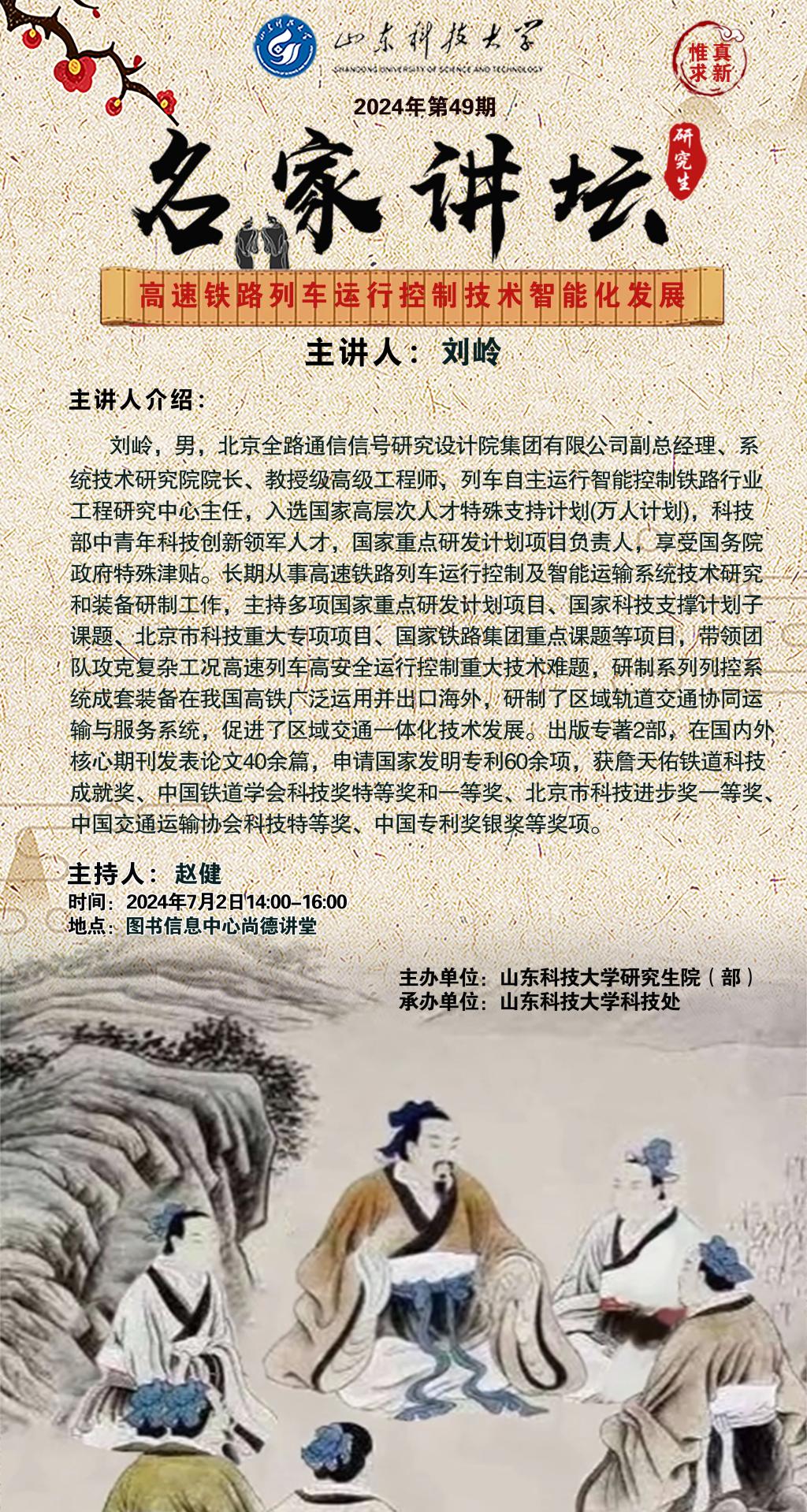 “名家讲坛”2024年第50期:磁浮轨道交通运行控制技术研究及展望、面向高铁列控网络的信息安...