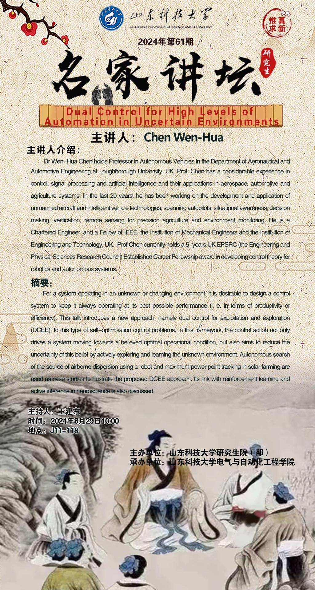 “名家讲坛”2024年第61期:Dual Control for High Levels of Automation in Uncertain Environments(总955期).