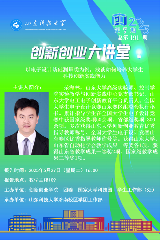 创新创业大讲堂2025年第7期总第191期:浅谈如何培养大学生科技创新实践能力
