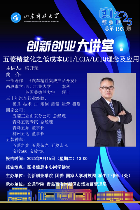 创新创业大讲堂2025年第9期总第193期:五菱精益化之低成本LCI/LCIA/LCIQ理念及应用