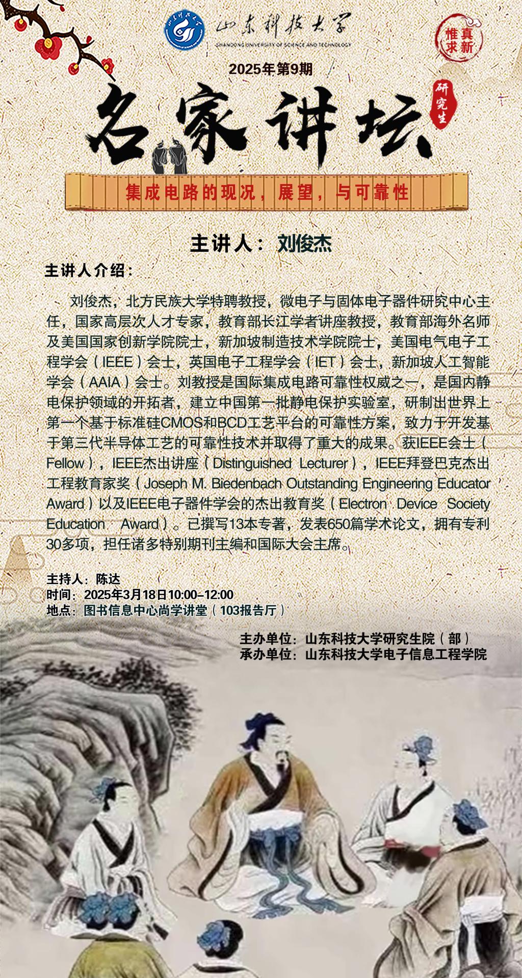 “名家讲坛”2025年第9期:集成电路的现况,展望与可靠性(总1014期)