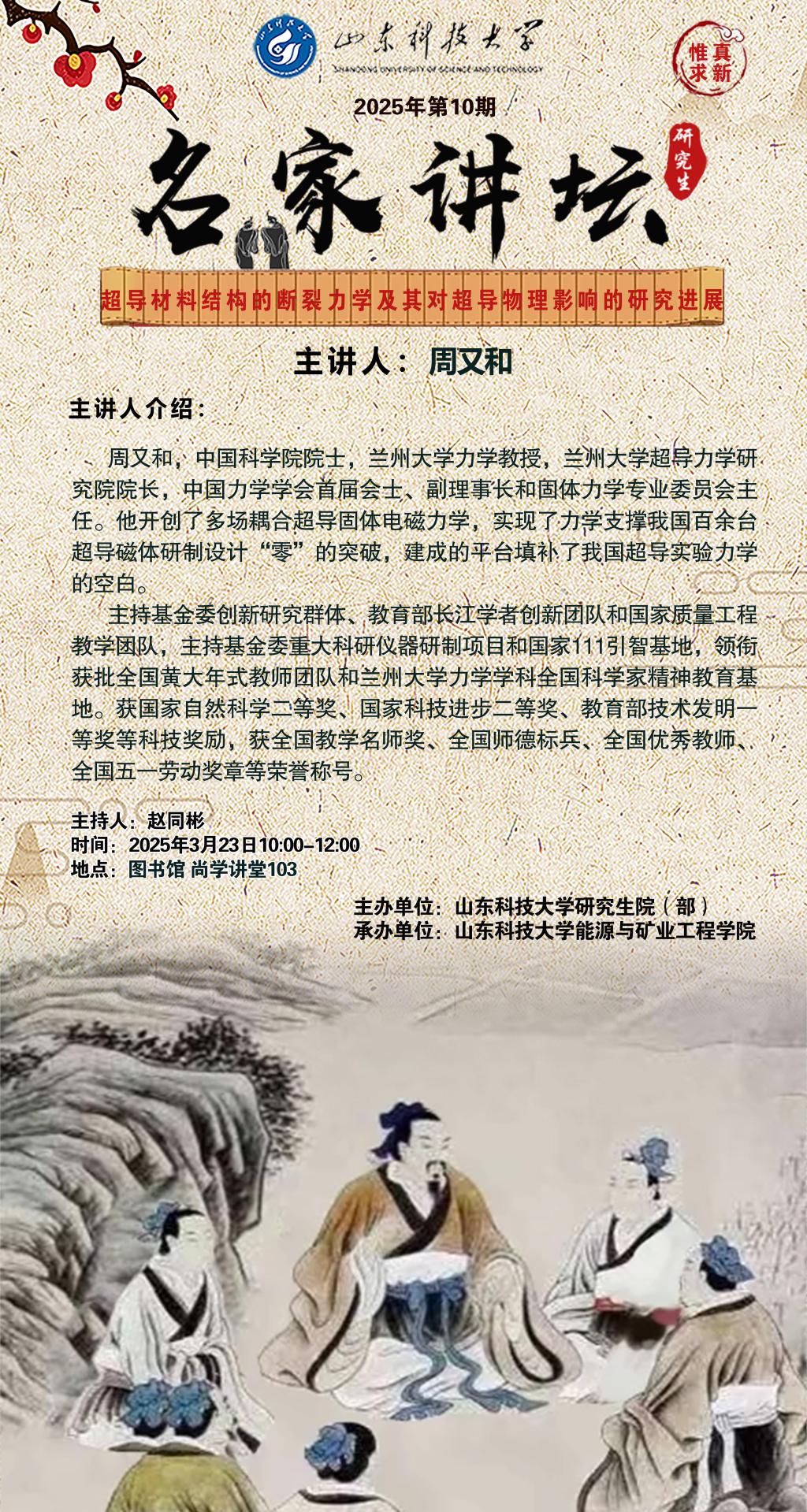 “名家讲坛”2025年第10期:超导材料结构的断裂力学及其对超导物理影响的研究进展(总1015期)