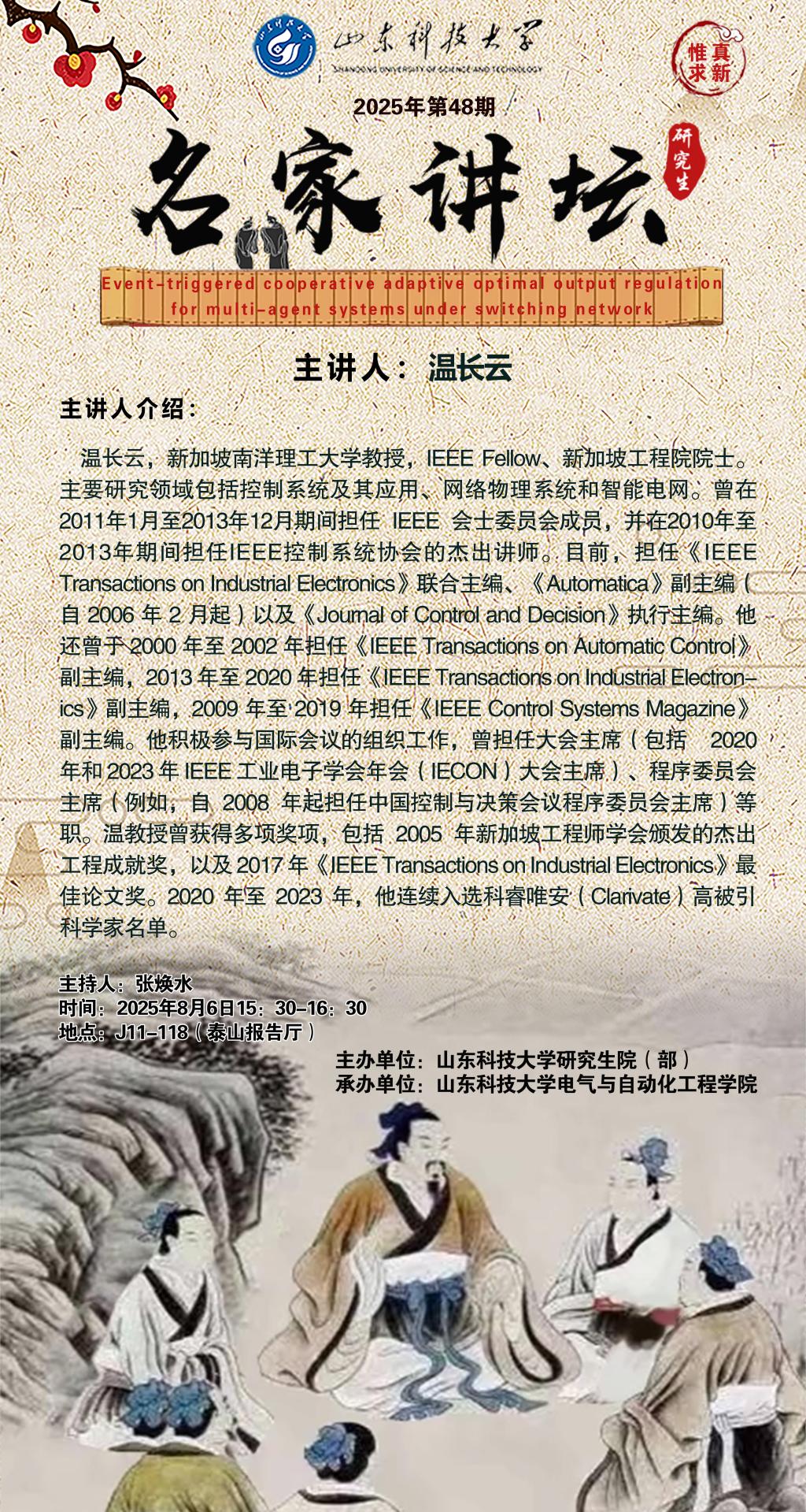 “名家讲坛”2025年第48期:Event-triggered cooperative adaptive optimal output regulation for multi-agent systems under switching network(总1053期)