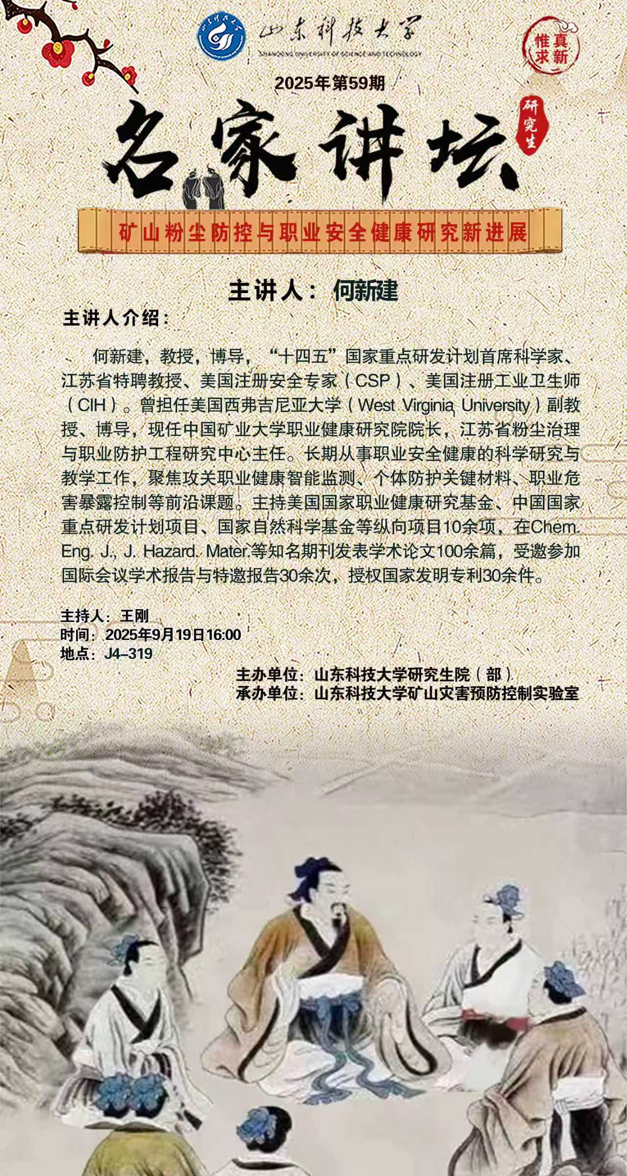 “名家讲坛”2025年第59期:矿山粉尘防控与职业安全健康研究新进展(总1064期)