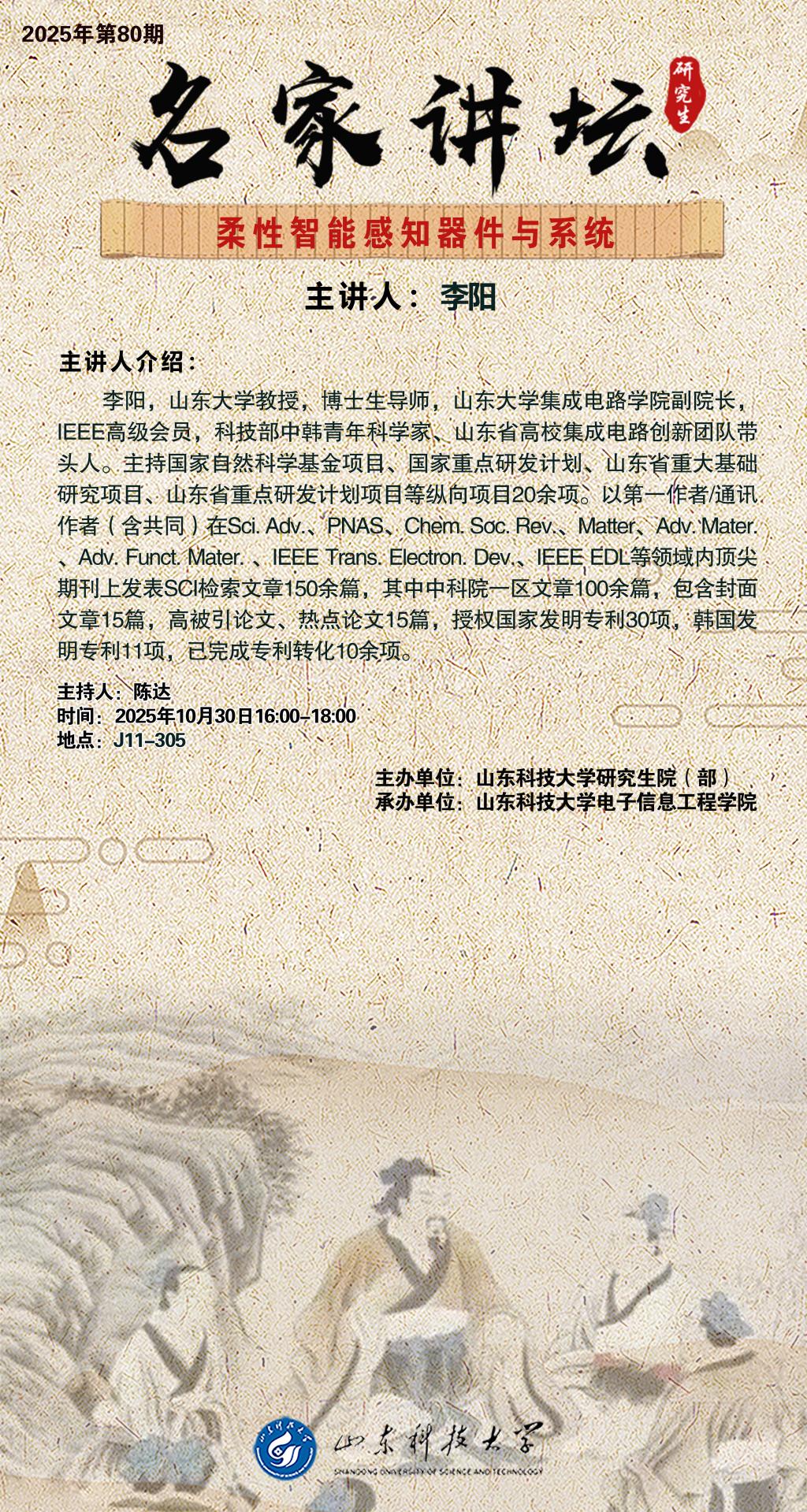 “名家讲坛”2025年第80期:柔性智能感知器件与系统(总1085期)