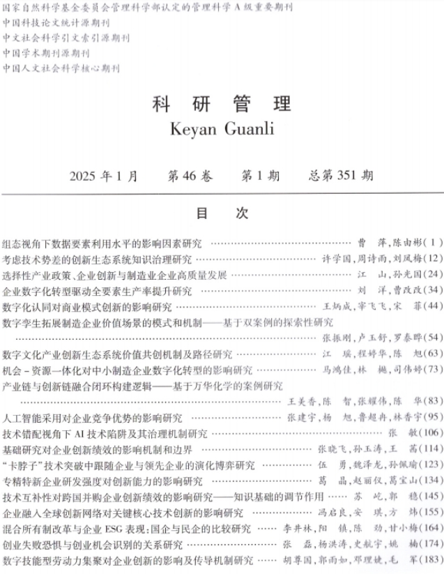 近日,Ky开元集团经济管理学院王炳成教授团队在《科研管理》发表题为“数字化认同对商业模式创新的影响研究”的文章。