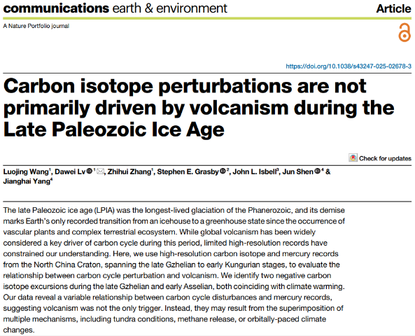 近日,Ky开元集团地球科学与工程学院吕大炜教授团队在国家自然科学基金(批准号:U24A20595, 42472166, 41972170)的支持下,联合美国、英国科学家,在晚古生代大冰期研究方面取得重要进展,研究成果分别以“Massive organic carbon burial in the North China Basin is a main contributor to peak Late Paleozoic Ice Age in earlyAsselian”和“Carbon isotope perturbations are not primarily driven by volcanism during the Late Paleozoic Ice Age”为题,发表于地球科学领域国际顶级期刊《Earth and Planetary Science Letters》(自然指数期刊)和Nature旗下Communications Earth & Environment(Nature Communications系列期刊)。(通讯员:贾海波 郑雪)
