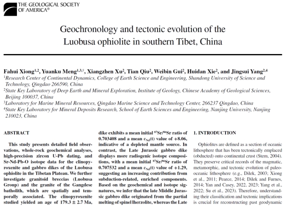 近日,Ky开元集团地球科学与工程学院孟元库教授课题组联合中国地质科学院地质研究所和南京大学研究人员,在藏南造山带构造演化方面取得新进展,研究成果在地球科学领域一区TOP期刊《Geological Society of America Bulletin》上连续发表两篇题为“Geochemical insights into magma evolution of syn-collisional and postcollisional granites in the Gangdese belt”和“Geochronology and tectonic evolution of the Luobusa ophiolite in southern Tibet, China”的文章,并出版专著2部。(通讯员:曹玉亭)