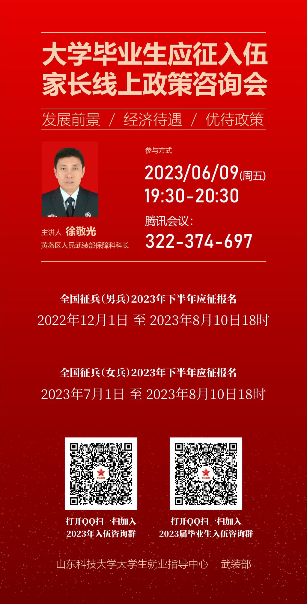【应征入伍】大学毕业生应征入伍家长线上政策咨询会