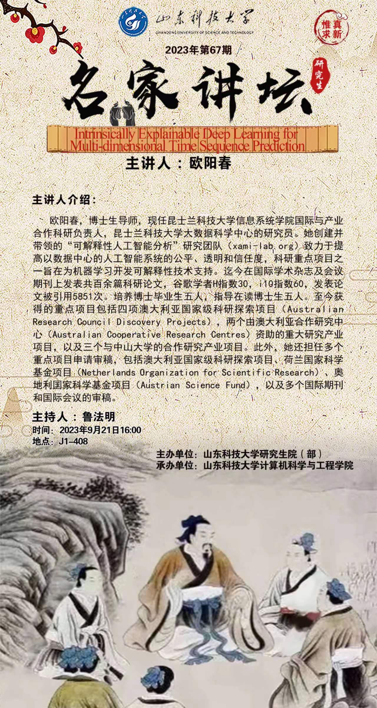“名家讲坛”2023年第67期:Intrinsically Explainable Deep Learning for Multi-dimensional Time Sequence Prediction(总868期)
