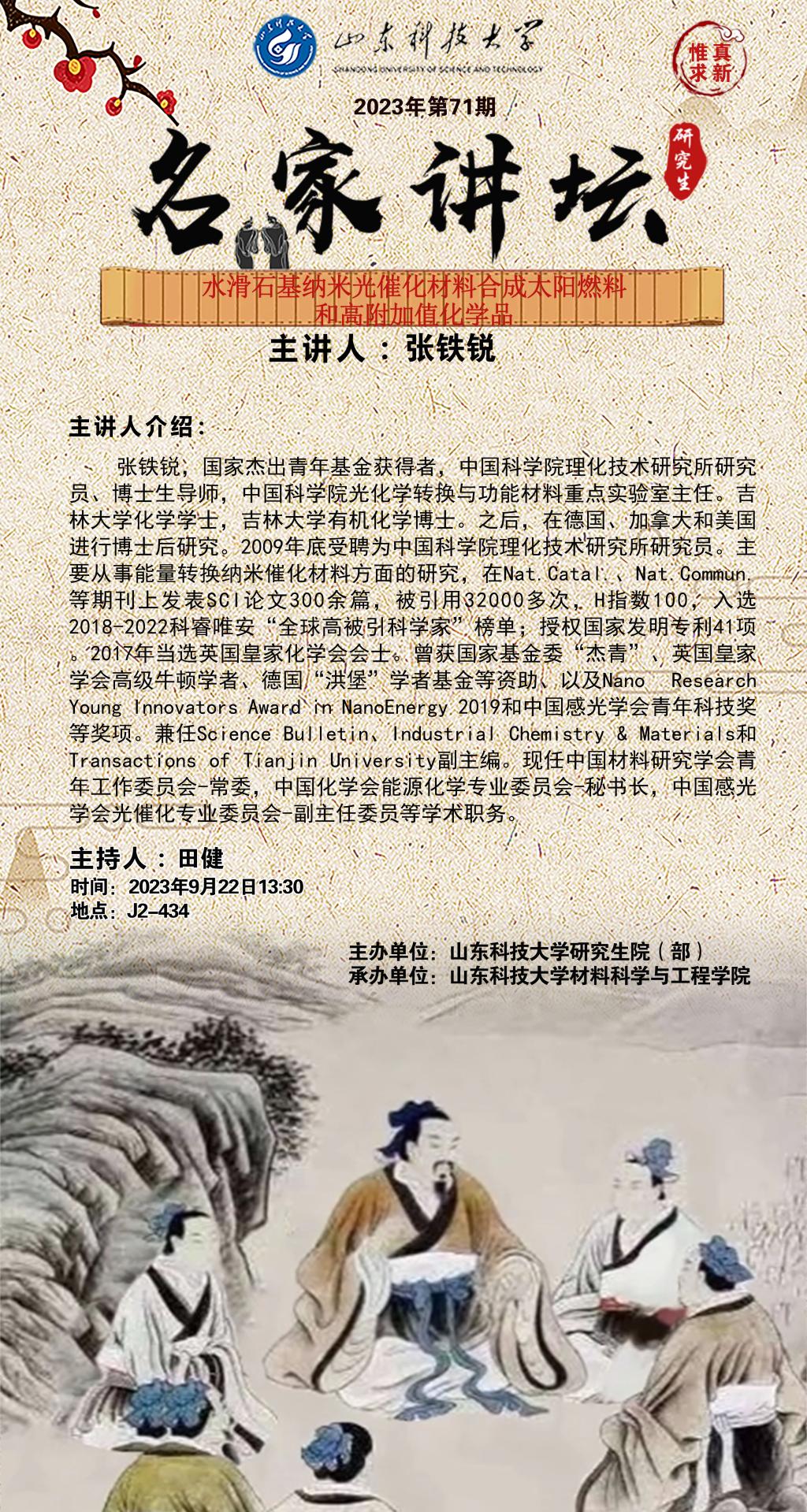 “名家讲坛”2023年第71期:水滑石基纳米光催化材料合成太阳燃料和高附加值化学品(总872期)