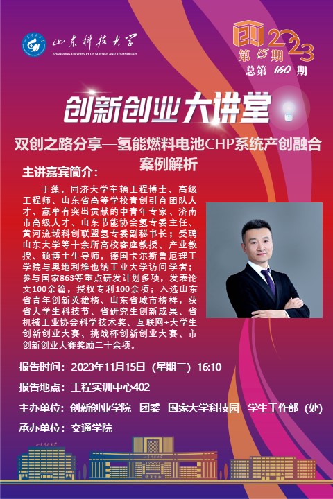 创新创业大讲堂2023年第15期:双创之路分享一氢能燃料电池CHP系统产创融合案例解析
