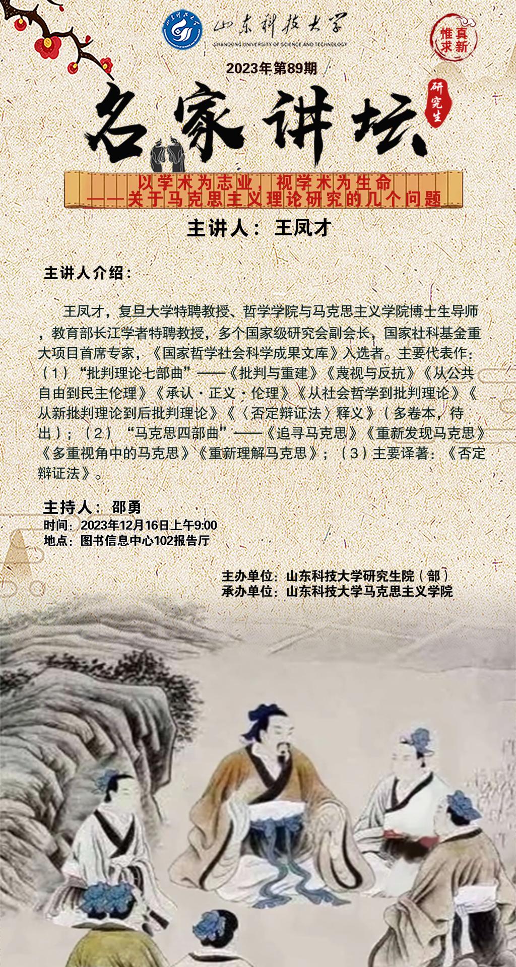 “名家讲坛”2023年第89期:以学术为志业,视学术为生命——关于马克思主义理论研究的几个问题(总890期)