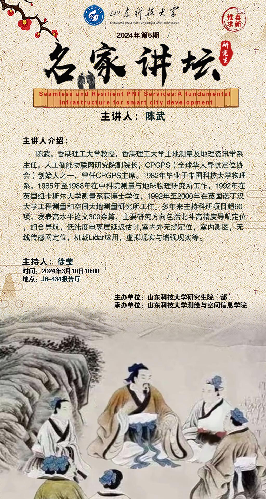 “名家讲坛”2024年第5期:Seamless and Resilient PNT Services A fundamental infrastructure for smart city development(总899期)