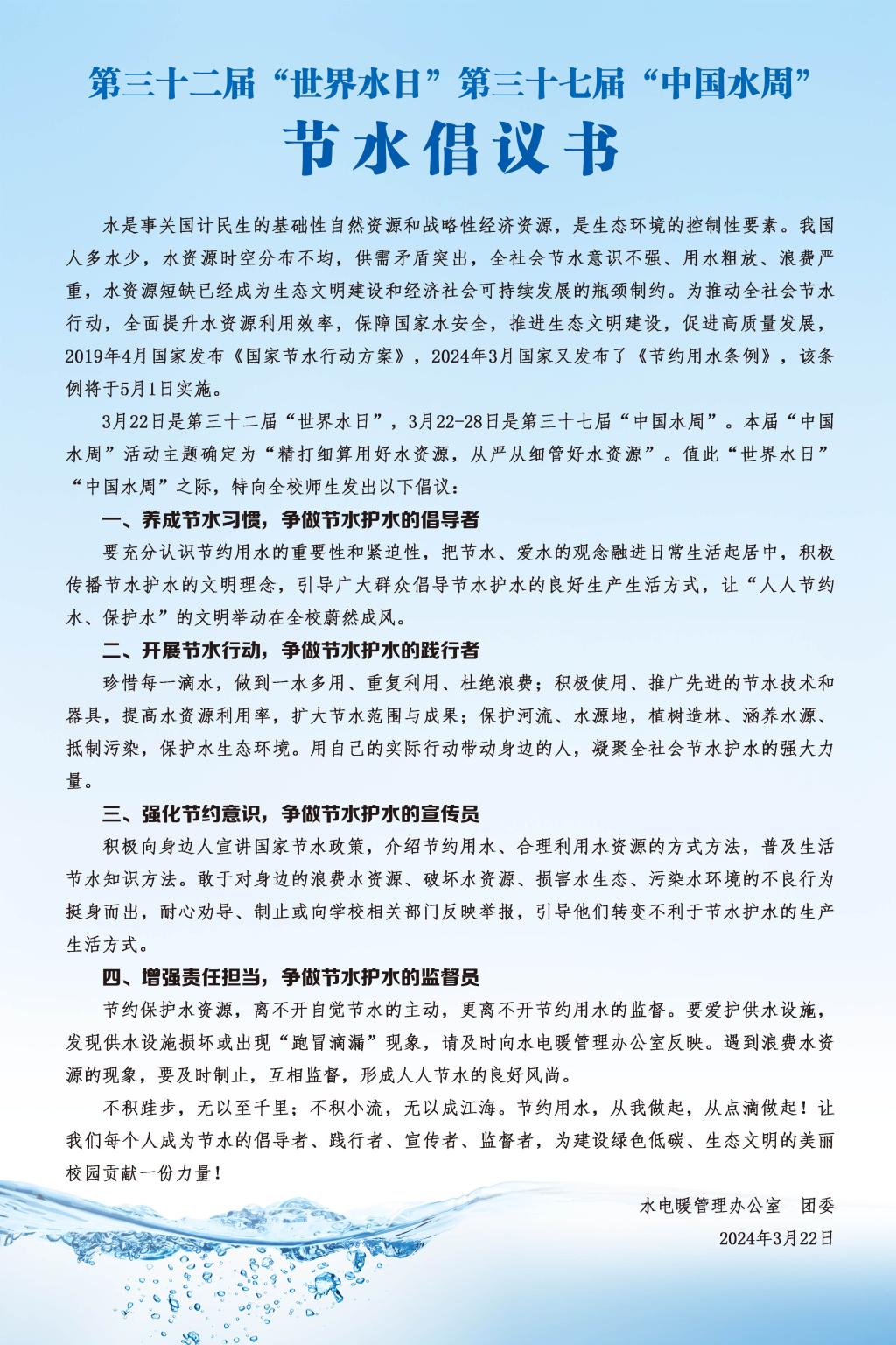第三十二届“世界水日” 第三十七届“中国水周”节水倡议书