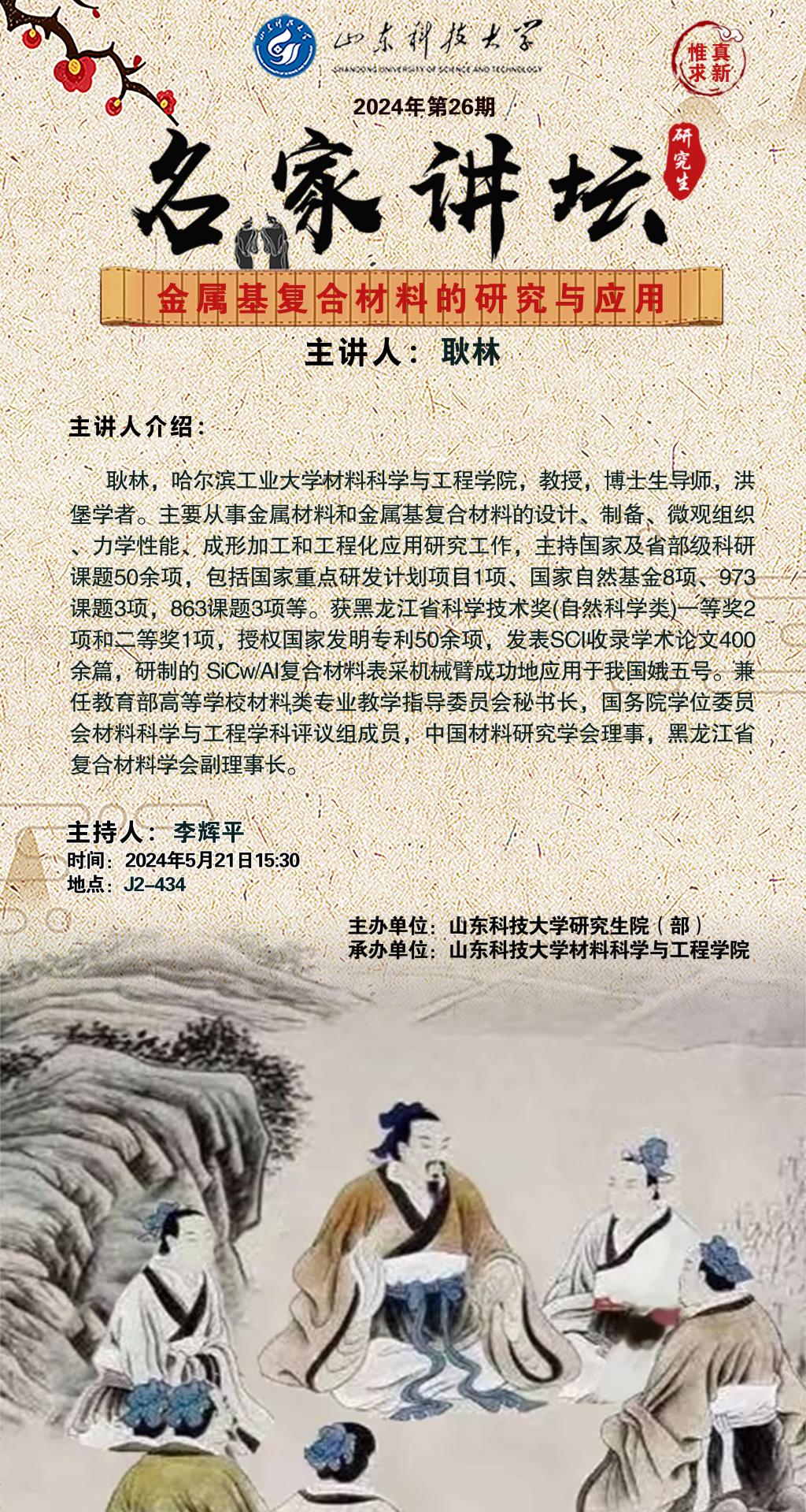 “名家讲坛”2024年第26期:金属基复合材料的研究与应用(总920期)