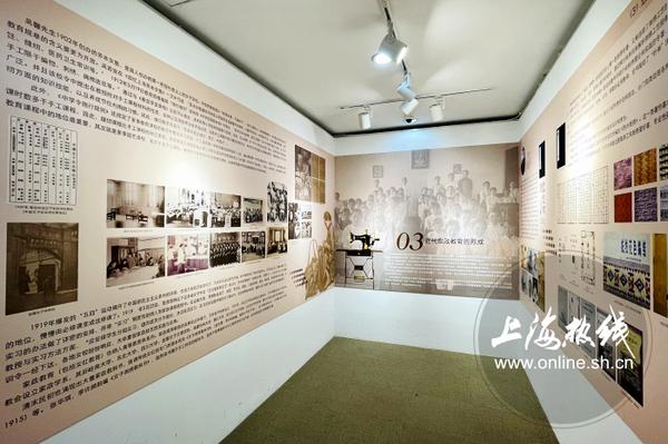 “冯秋萍们的编织世界”是此展览中的一大亮点。在类似近代上海石库房的展览场景中,陈列着旗袍、套装、学生装等各类近代时装,引导观众体味20-30年代上海毛纺织业之繁荣。而冯秋萍、黄培英则是绒线编织的代表人物,她们不仅积极开办编织学校,亦编写多种绒线编织教材,构筑起多彩的“编织世界”。